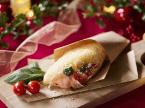 ハウステンボスのクリスマスマーケットで食べれるナターレ・パンチェロッティは、イタリア発祥の揚げピザです。