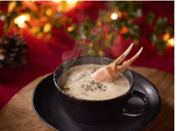 ホワイトクリスマス・クラブチャウダーは、カニの旨味が詰まった濃厚なクリームスープです。